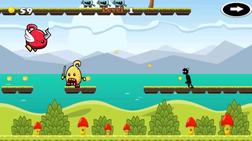 Berlari dan melompat dan terbang untuk mencapai harta un dunia ini fantastis dan kemudian merayakan penemuan emas dengan teman-teman Anda .Ini adalah Gambol kucing biru yang kadang-kadang memiliki masalah dengan uang dan musuh.