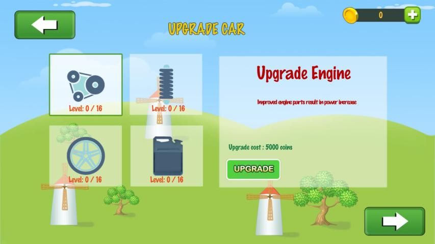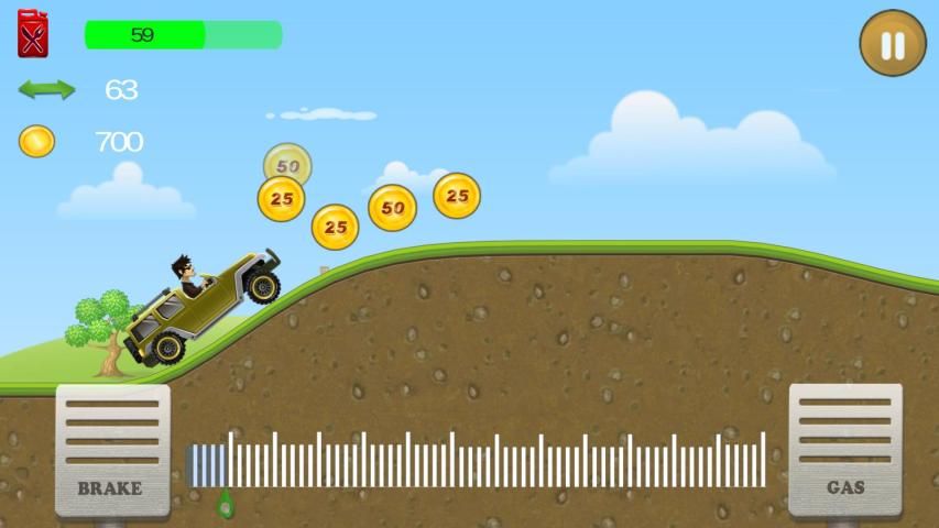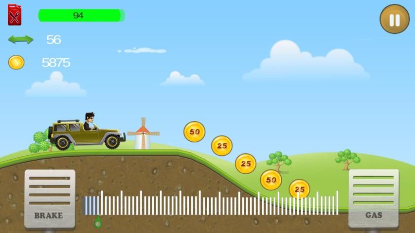 Control your car or bike to climb hills with most realistic control to face the challenges of unique uphill & downhill environments. Gain bonuses from tricks and collect coins to upgrade your car and reach even higher distances.