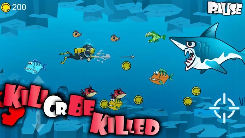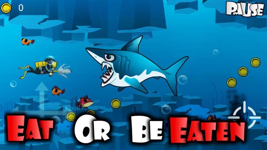 Tidak takut ikan marah atau lapar atau hiu lapar, Hanya tekan untuk menembak. Membela diri dari serangan hiu!