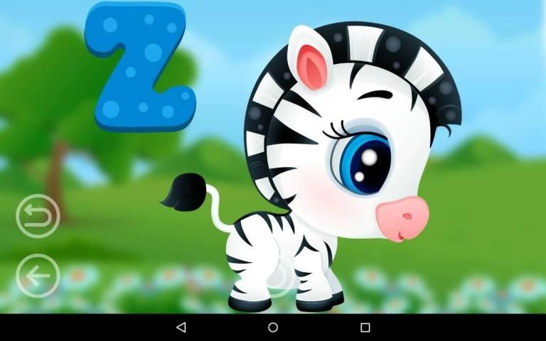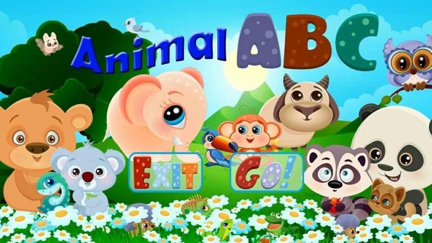 Terdengar alfabet untuk anak-anak, dengan binatang kecil bergembira.
