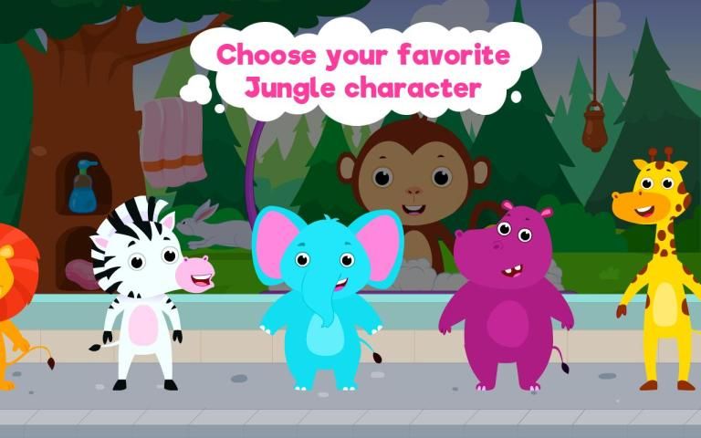 Make your kid learn basic Bathing and hygiene practices with this awesome Jungle adventure. Let your toddler help the soiled Jungle Baby Animals get soaped, washed and cleaned up. Choose from a number of Jungle animals : Toby the Tiger, Luna the Lion, George the Gorilla, Elsa the Elephant, Zibu the Zebra, Henry the Hippo, Gabby the Giraffe and Milo the Monkey.