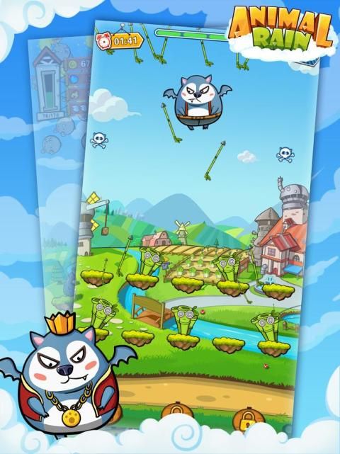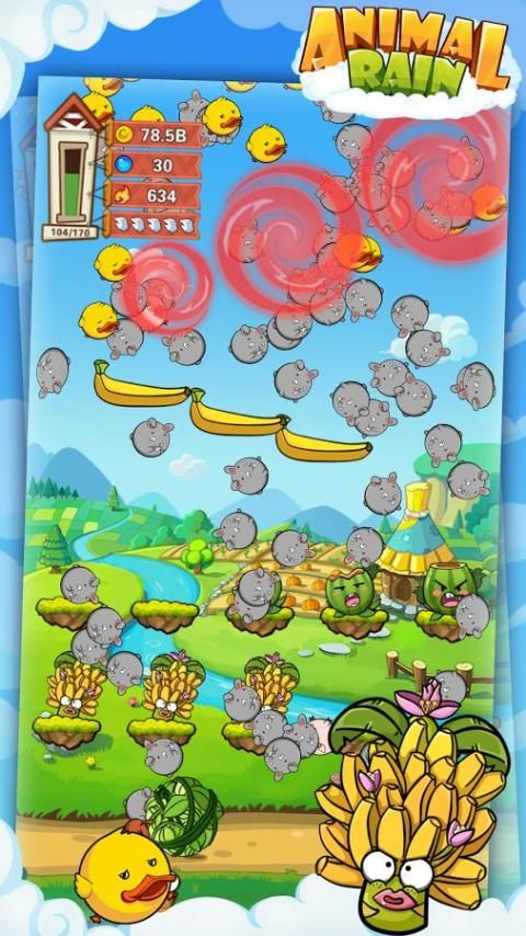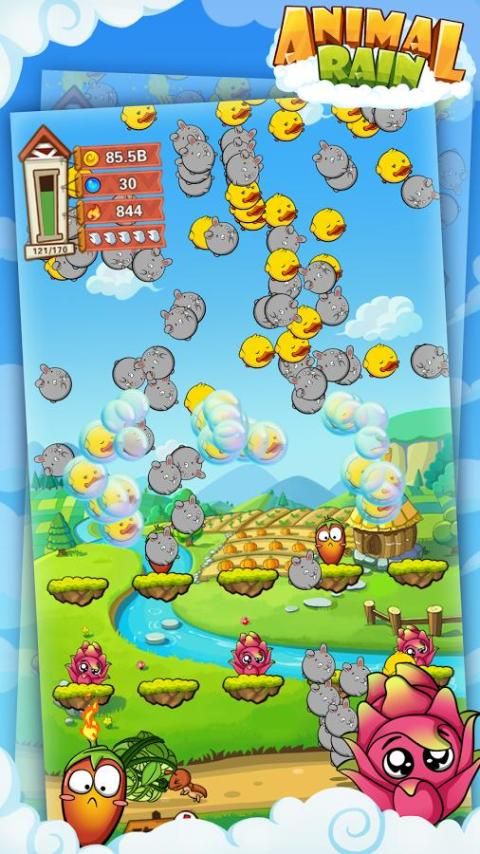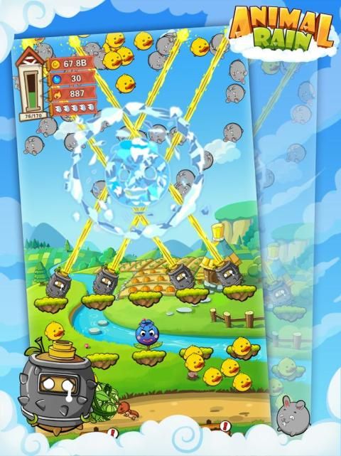 1) tekan: layar sentuh untuk membiarkan hewan jatuh bebas, sebagai Rain Animal.