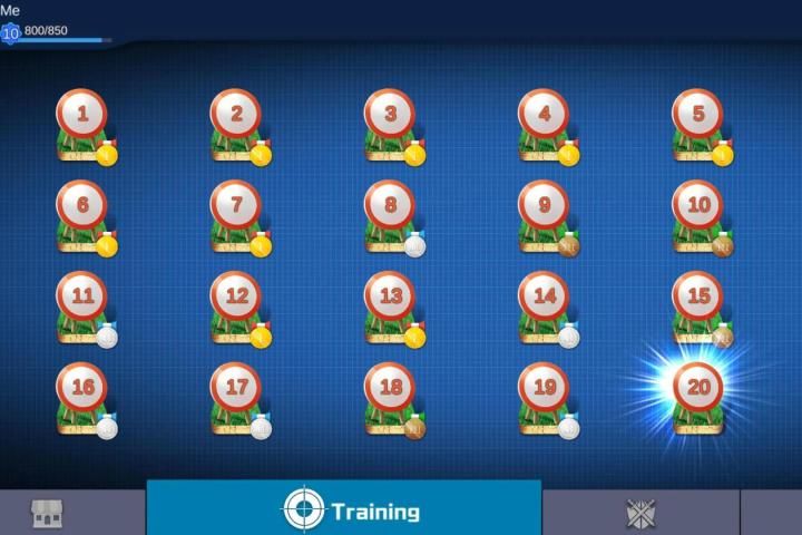 Ada bidang pelatihan yang cukup untuk Anda, dengan kesulitan untuk memilih. Seret dan targetkan skor, lalu tembak peluru. Ada beberapa petunjuk tentang skor yang akan Anda dapatkan tepat sebelum mengirim peluru. Semakin dekat ke poin merah, semakin tinggi poin yang akan Anda dapatkan.