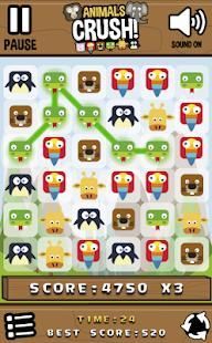 Animals Crush adalah pertandingan, pencocokan atau pertandingan 3 game. Cobalah untuk menghubungkan ubin sebanyak yang Anda bisa pada saat sambil menonton untuk timer. Ketika waktu habis, permainan berakhir, tetapi Anda bisa mendapatkan waktu ekstra dengan koneksi mengagumkan!