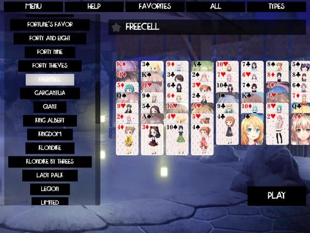 This game is a huge collection of solitaire games (practically all variations that exist), themed in kawaii anime / manga setting. If you like to relax by solving solitaires and also are an otaku of pop Japanese culture, moe girls, chibi princesses, cute Asian characters and high school sailor uniforms - it's exactly the app for you.