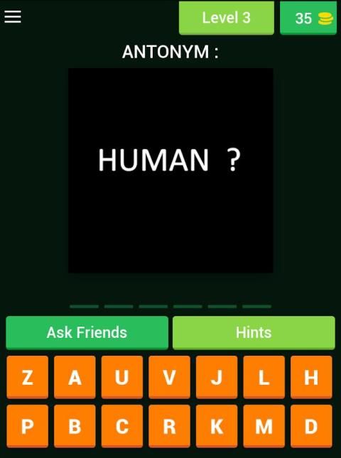 Anda harus menjawab pertanyaan-pertanyaan untuk melewati setiap tingkat dengan menempatkan huruf yang tepat pada ruang yang tersedia.
