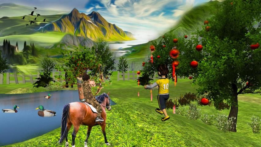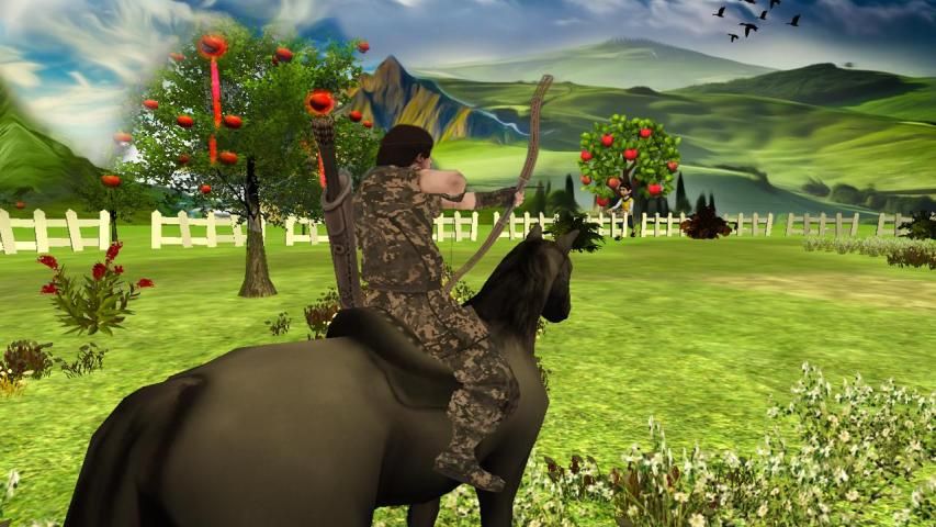 sambil duduk di atas kuda, untuk menembak apel tapi waktu terbatas bagi Anda untuk menembak apel dan mengisi keranjang. Makhluk