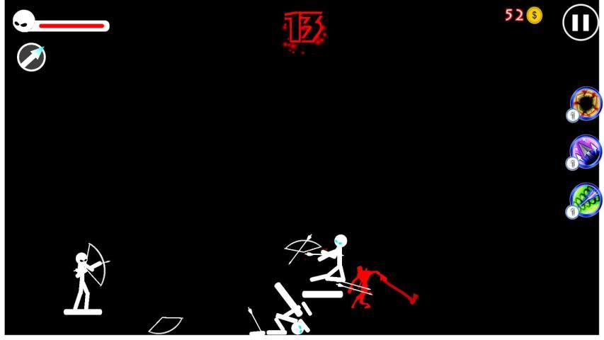 Anda perlu untuk mengalahkan sebanyak stickman musuh seperti yang Anda dapat oleh busur Anda sebelum mereka menghancurkan Anda. Stickmen musuh Hancurkan oleh dua hits di batang tubuh atau satu headshot.
