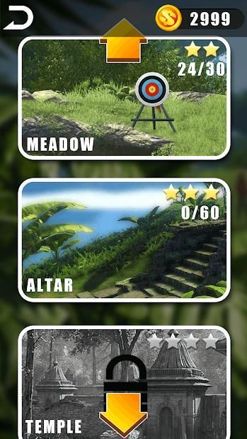 2 modes: Single Mode and 1v1 Battle. There are 5 maps in the single mode. Each map has 30 games which will totally satisfy your archery desire. Tryto challenge levels constantly to enhance your shooting skill and earn more coins to buy better game props.