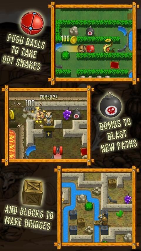 • Roll through forest mazes, rocky deserts, underground caves, dark canyons, and more with progressively harder puzzles