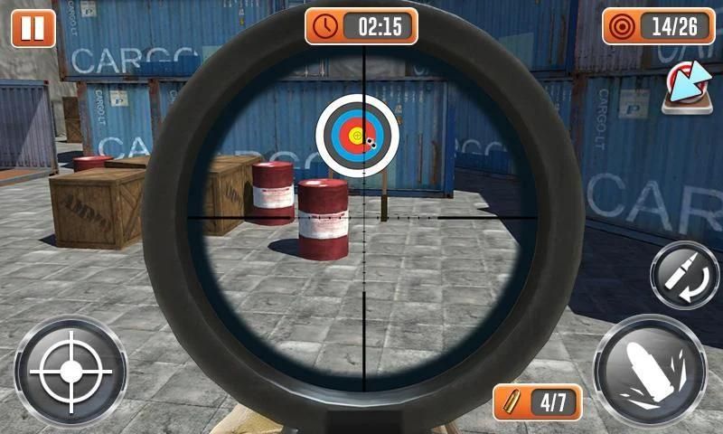 The real sniper rifles to shoot the bulls eye on the target in shooting range which is gold feature among the long range sniper shooting game.