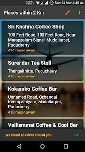 *Now,if a particular type of place is not available near you,the app will search for further distances.