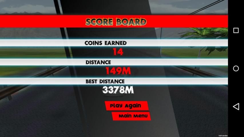 Ini adalah permainan mobil Penghindaran asli. Tujuannya adalah untuk memiringkan perangkat untuk menjauhkan diri dari kendaraan yang masuk. Permainan juga termasuk pos pemeriksaan yang pemain dapat menangkap untuk poin ekstra dan fungsi meningkatkan berguna untuk para pemain yang sulit untuk Trill.