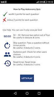 Ini adalah permainan gratis dan sangat menyenangkan. Anda mungkin tidak tahu banyak tentang astronomi. Tidak apa-apa. Anda dapat menggunakan Astronomi Quiz Game untuk membantu Anda belajar sedikit tentang astronomi.