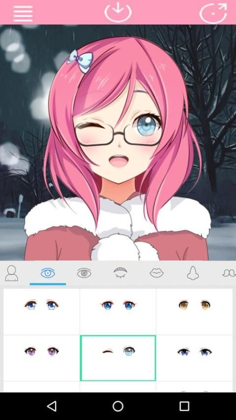 aplikasi anime wajah digunakan untuk mengedit avatar foto kartun Kepala potret Foto, Profil Picture dan banyak stiker lucu seperti mata, telinga, hidung, kacamata, memakai untuk mengedit avatar foto anime pencipta.