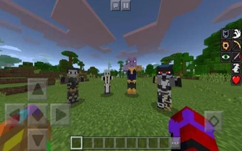 addon ini didasarkan dari Superhero. Ide utama add-on adalah dengan menambahkan banyak hal dari film ke dalam dunia Minecraft Anda, termasuk enam Infinity Stones. The Infinity Stones tidak memiliki fungsi, tetapi Infinity gaunlet pasti memiliki sebagai sit dapat menyelamatkan Anda dari kematian. Ada juga Thanos Boss, yang memiliki 1000 kesehatan dan dapat teleport menggunakan Space Stone. Jadi sesuai dan menyelamatkan dunia!