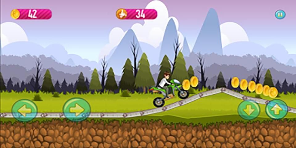 Pahlawan super Ben harus menghindari rintangan di balapan. Super moto naik lintas terlalu cepat sehingga pahlawan kita ben harus memperhatikan nya balap sepeda motor lintas.