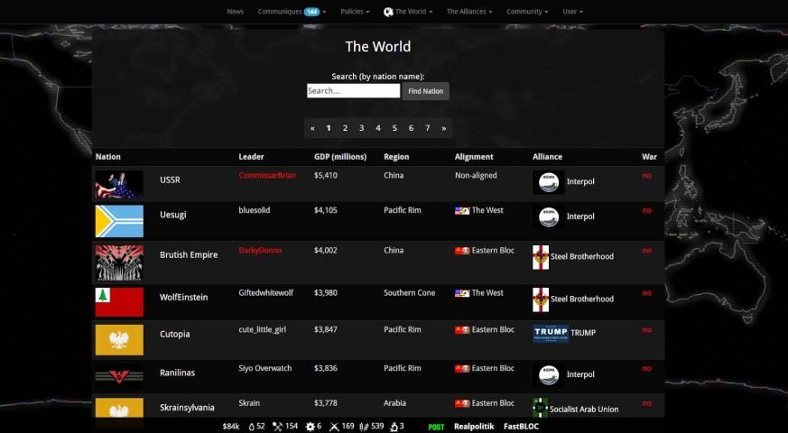 Sekutu atau bersekongkol melawan ratusan negara-negara lain, masing-masing dipimpin oleh pemain seperti Anda, di dunia politik sandbox didorong oleh pemain.