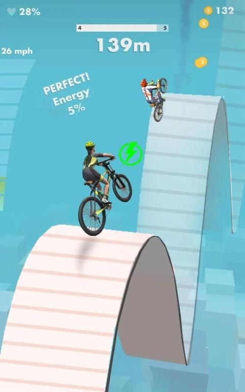 Take it to the MAX and drag the fun to the ultimate next level. Rush through the void while dodging obstacles in this endless roller coaster ride. Think quick and tap to switch lanes in order to reach incredible speeds! Play with the obstacles and make your BMX run faster so to leave the opponents behind. Cross all the ramps and prepare yourself for unforgettable mega ramp stunts rides and real racing madness. You'll flip over our most thrilling airborne tracks in bicycle game. Perform multiple jumps and flips at the same time to earn more points. Win the BMX flip madness championship to discover new adventures along the way. Volunteer and keep challenging the opponents and do master your bicycle riding skills high in mad BMX riding games. Explore completely the whole lot of new mega stunts tracks for bicycle racing in bmx madness & bicycle riding games. Immerse yourself in these beautiful surroundings while you enjoy state of the art graphics that are a true flipping & rolling BMX for your senses. This simple mini racing game will impress you with its beautiful art style in flip madness bmx games.
