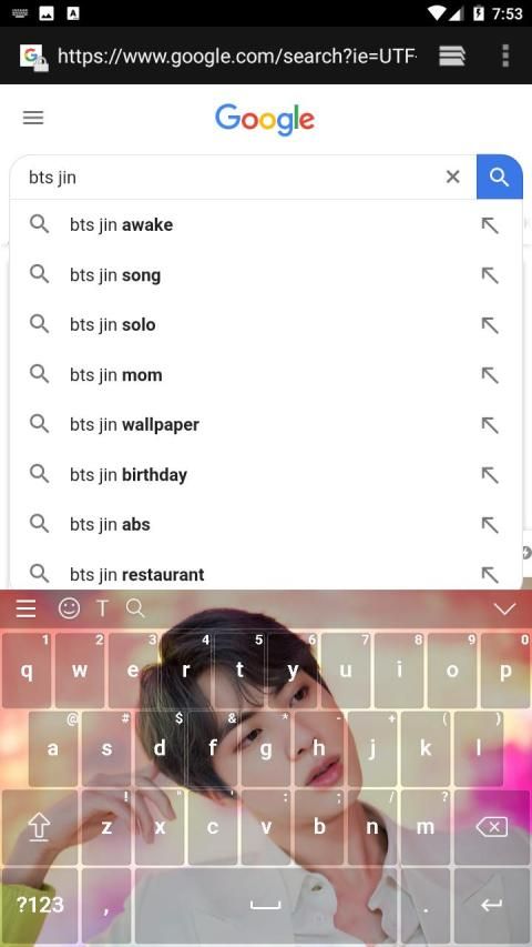 BTS Jin Keyboard is an application that can beautify your smartphone keyboard when typing chat using your BIAS JIN or Kim Soek Jin from BTS as Background.