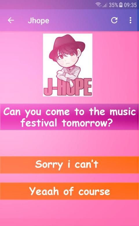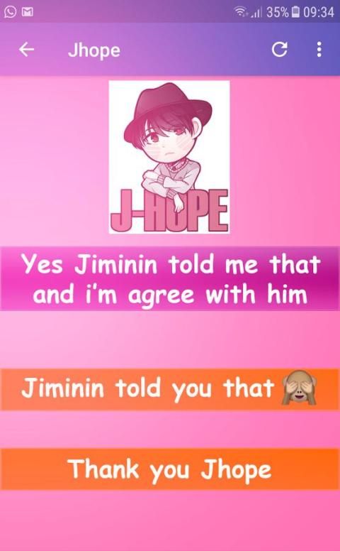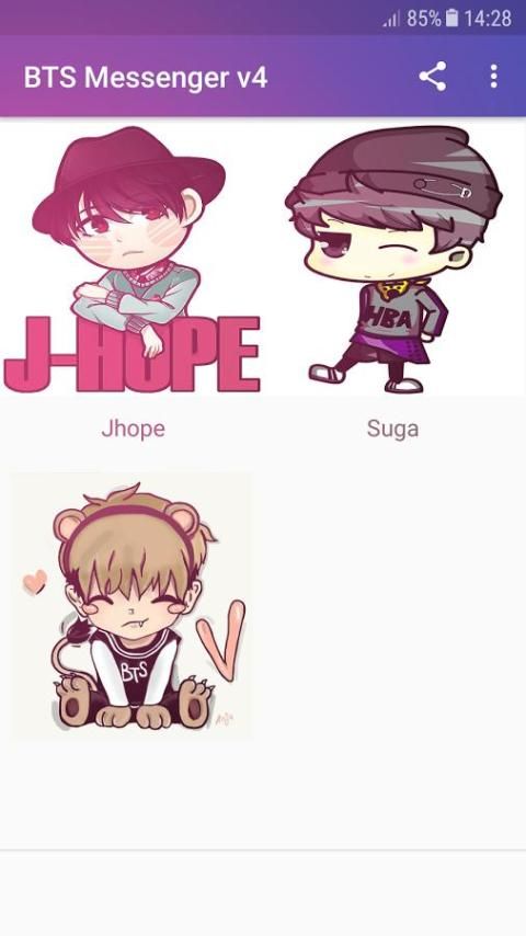 itu sebabnya kita penggemar tim bts kita buat BTS Messenger V4 versi ini memiliki lebih banyak fitur dan percakapan lebih realistis sehingga Anda dapat menikmati dengan oppa Anda sehari-hari.