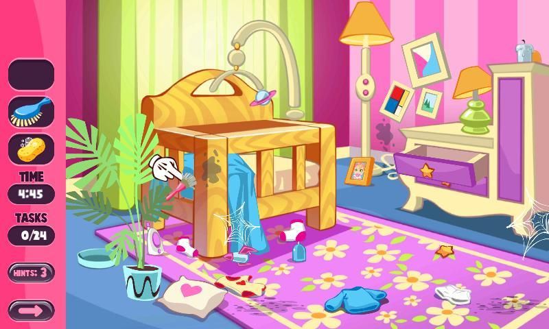 - 8 different rooms to clean from floor to ceiling: bedroom, living room, kitchen, bathroom, bedroom, office, makeup room and a special surprise room!