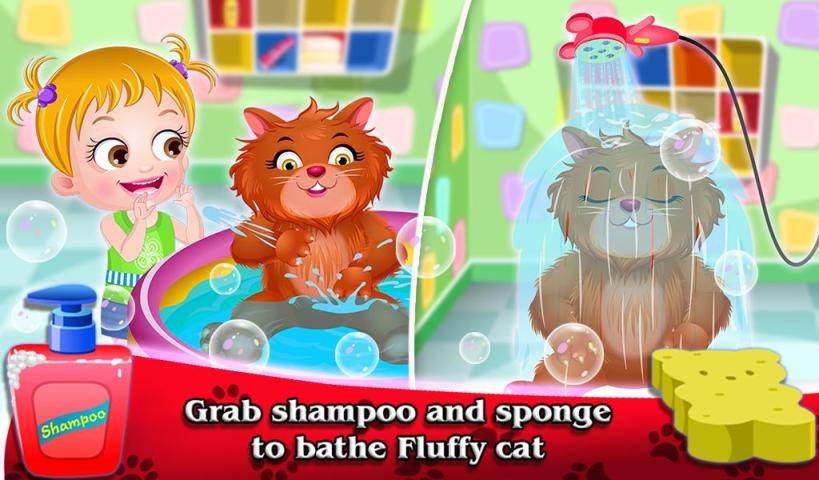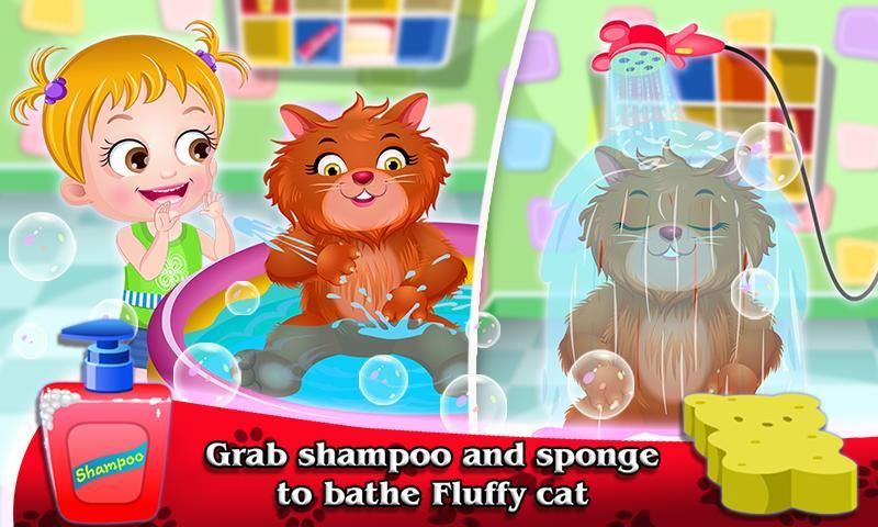 Bergabung Bayi Hazel dengan hewan peliharaan lucu nya, untuk bersenang-senang mandi, bermain dengan mereka. Membantu malaikat kami untuk mengatur hewan peliharaan berkumpul, dan membuat memperlakukan yummy lezat untuk semua.