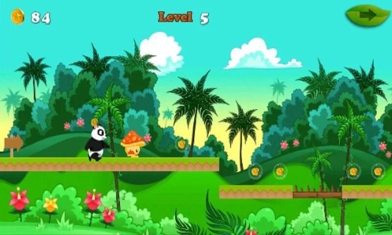 Bantuan panda berjalan di hutan, mengumpulkan koin mengkilap dan menyelesaikan semua tingkat di ini menyenangkan dan menakjubkan berjalan panda game.