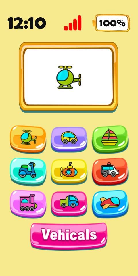 Sounds for kids. Being not only entertaining but also educational, this toddler activity will allow your child to learn sounds of different animals, vehicles and much more! kids phone contains 60 amazing sounds for kids across 6 awesome sets: