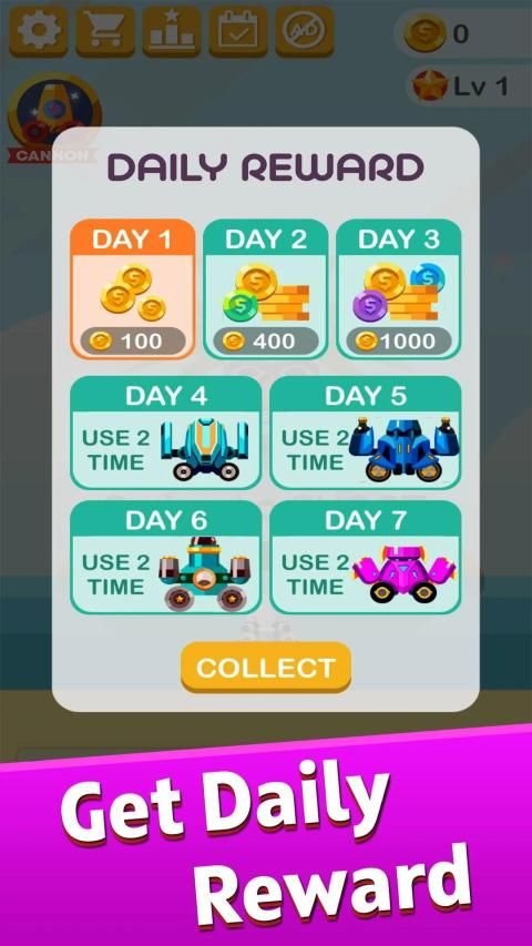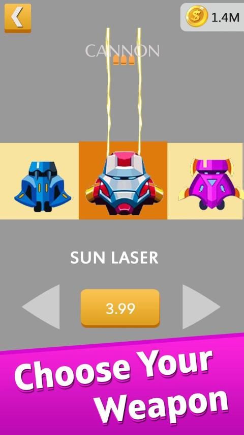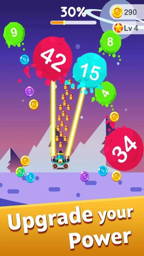 Tingkatkan meriam untuk mendapatkan skor yang lebih tinggi dan melewati lebih banyak level.