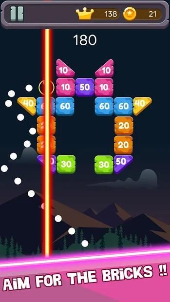 Ketuk jari Anda dan tembak bola untuk membuatnya memantul dan memecahkan batu bata. Cobalah untuk memecahkan batu bata sebanyak mungkin sebelum mereka bergerak ke bawah.