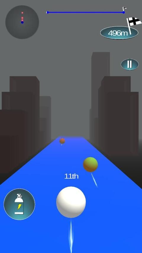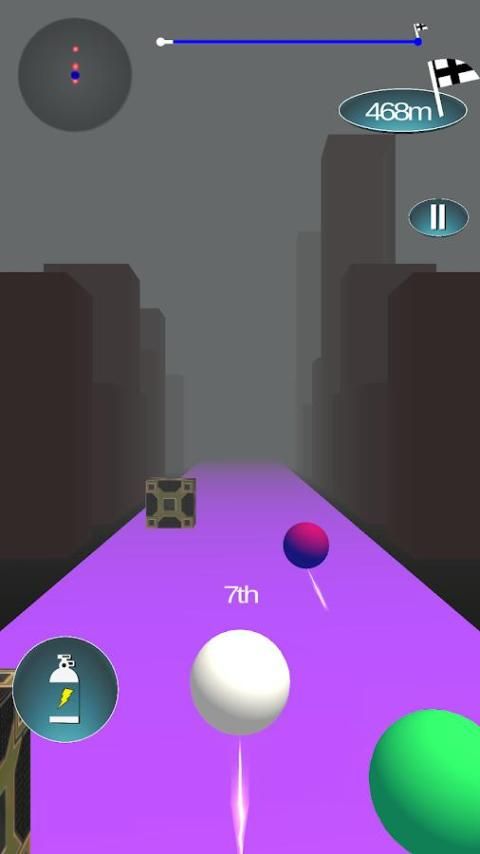 Anda harus sangat cepat di trek balap untuk mengalahkan bola balap lainnya. Yang harus Anda lakukan adalah, gunakan kanan dan ibu jari kiri untuk bergerak di sekitar bola dan mengatasi rintangan dan melewati bola lainnya.