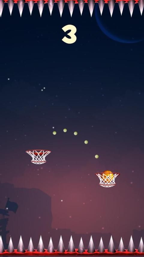 game is endless game. Be careful, don’t miss basket otherwise ball collide with spike and game over.