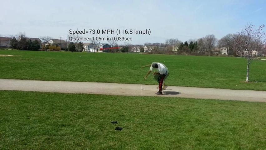 bisbol tindakan lapangan kecepatan, kriket kecepatan bowling, tenis melayani kecepatan dll menggunakan ponsel Anda. Mendeteksi bola secara otomatis dari video (berdasarkan warna) dan menghitung kecepatan.
