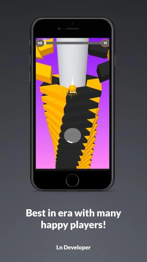 Press and hold on the screen and let the ball go down without touching the obstacles! Hold as long as possible to make combo and break the black blocks. Let the ball fall down from the helix stacks.
