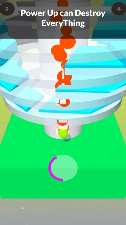 smash, bump and bounce through revolving helix platforms to reach the end.