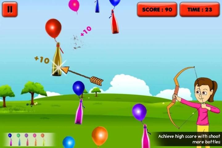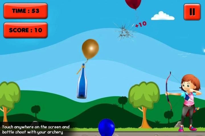 As the game goes, you get to see surprise elements like the Extra Arrows, unlimited arrows etc. in this ballon Bottle shooting game and arrow shooting game, or baloon shoot game and balloons Bottle game, which is one of the top arcade games and balloon Bottle shooter games, or bow and arrow games free, Kids love balloon games, and this game is specifically made for kids to play.