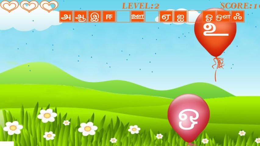 Mungkin Balloon Permainan pertama dengan Tamil alfabet untuk belajar.