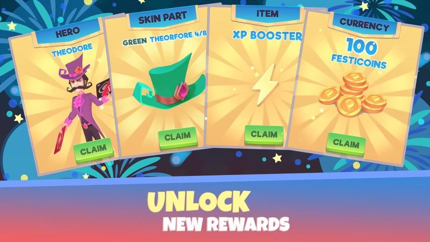 - Collect new rewards and cool skins to customise your hero before you prepare for arena battles!