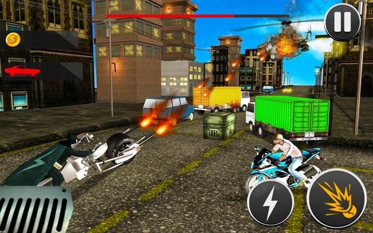 In this BAT BIKE STUNT RIDING SIMULATOR 2019 game you will drive your heavy bike with furious speed on city traffic highway and destroyed the different racing car, taxi, ambulance, police car, chopper and police motorbike with a machine gun and guided missiles.
