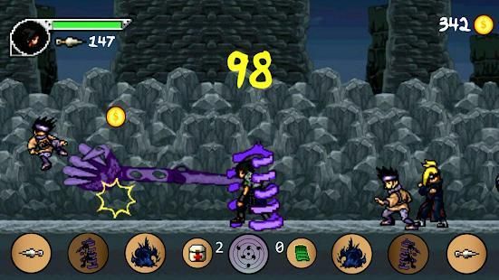 - penggunaan kunai untuk menyerang musuh dari jarak, membunuh musuh dan mengumpulkan koin untuk membuka shinobi tersembunyi dari desa daun.