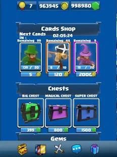 - Win and get a wide variety of chests full of treasures, collect new powerful cards and improve the ones that you already have; Make your own card decks and conquer all the arenas!.