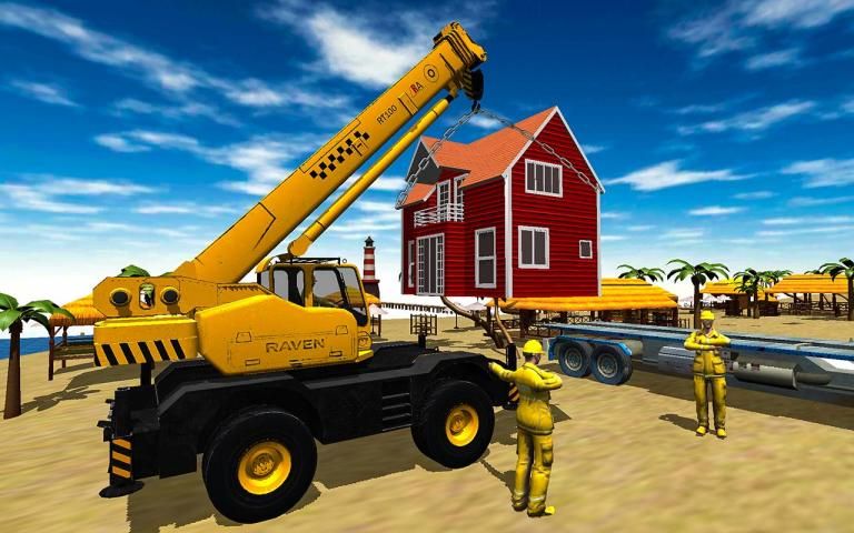 Untuk mencapai misi Anda, Anda harus mengendarai kendaraan berat mis. Crane tempat rumah pantai akan dimuat. Kemudian, Anda akan bergerak menuju tujuan dan meninggalkan rumah di sana.