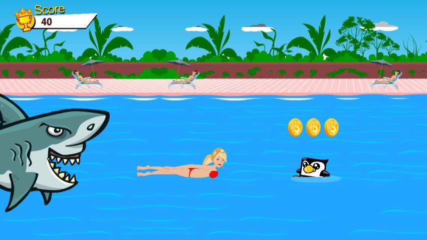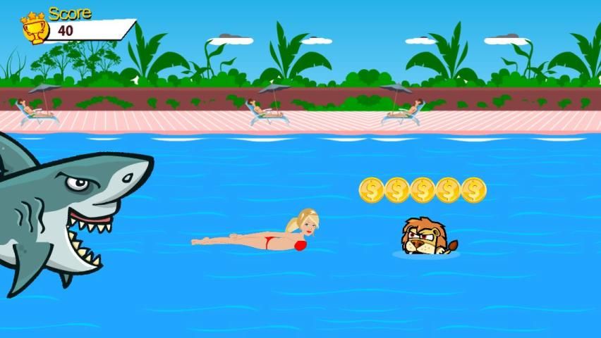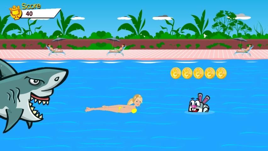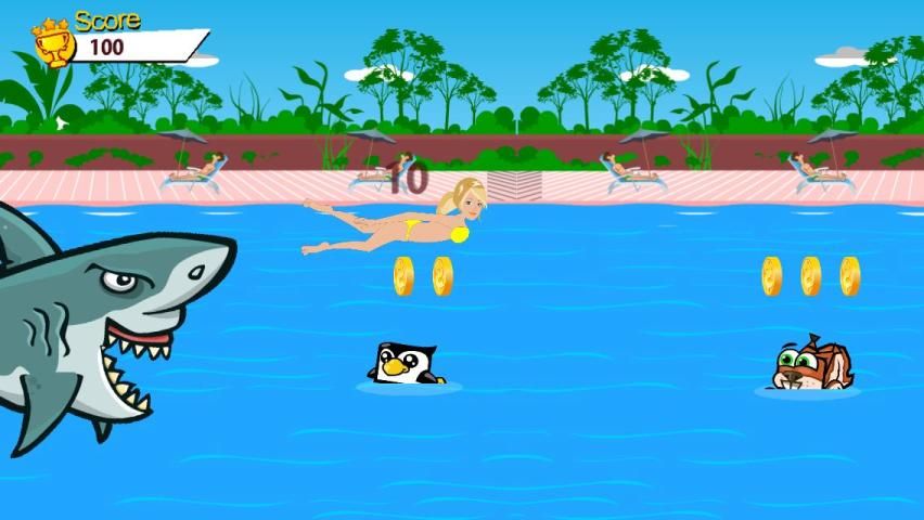 Putri berenang dan melarikan diri serangan hiu hungy di pantai. Melompati binatang lucu dan mengumpulkan semua emas untuk nilai terbaik.