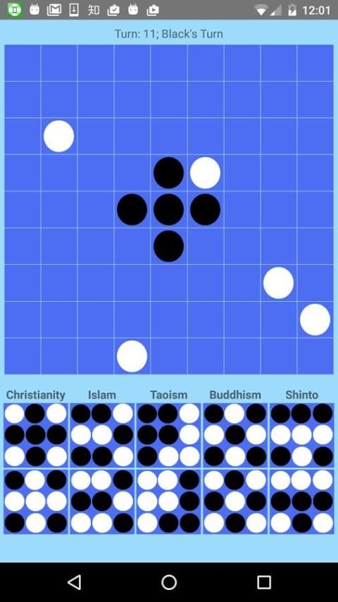 Memilih keyakinan untuk memulai permainan, dan menyembunyikan pilihan dalam pikiran Anda ... hingga pertandingan berakhir. "Menggambar" kepercayaan dalam sepotong hitam dan putih di papan Go sebanyak yang Anda bisa, dan pemain lawan juga akan menarik nya / miliknya. Namun, masing-masing pihak hanya bisa menggunakan warna putih atau hitam, jadi pada dasarnya Anda perlu bantuan lain untuk menyelesaikan simbol. Akhirnya ketika papan penuh (setelah 81 putaran), statistik akan memberitahu pemain yang sisi memiliki skor yang lebih tinggi, atau dengan kata lain, menyoroti yang memenangkan permainan.
