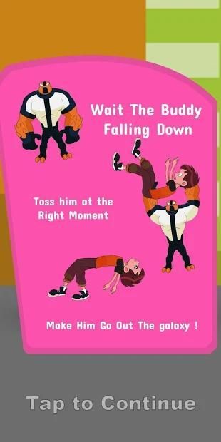You only need to tap , tap and tap. Yes, it is as easy as that, homie. Sling the guy high in the sky, but make sure to keep him from falling down. The higher you go, the more you score, the better you rank. Your aim is to go beyond the solar system, and compete even with rockets. Blow off some steam with Ben buddy toss.