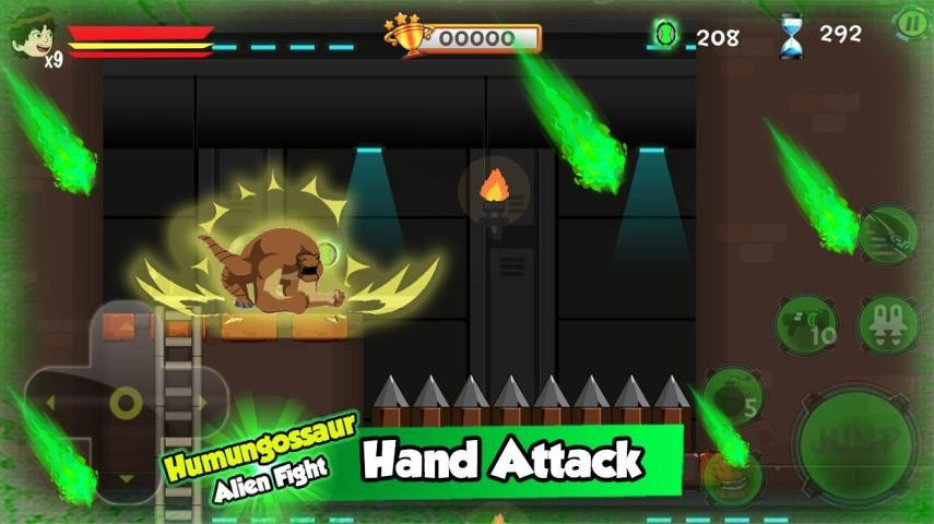 * Klik tombol tangan untuk serangan dengan api tangan dan Moving Omnivers 10000 ben pahlawan super boy!
