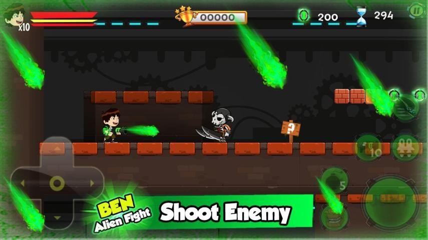 Untuk menyelesaikan permainan platformer super ben 10 (sepuluh) akan melompat dan menjalankan kecepatan sampai dengan superhero ben albedo pada banyak rintangan, melawan dan menembak terhadap kebakaran terbang ninja, Bats, reboot, sepuluh, Humungousaur, kerangka, gwen Tennysons Mainan, kevin 11, Hiu, kekuatan Omnitrix dan Omniverse banyak monster lainnya kekuatan Omnitrix