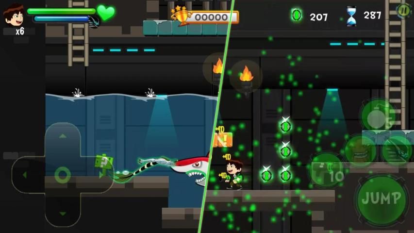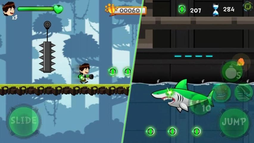 Untuk melengkapi platformer ben permainan super ben ini 10 (sepuluh) akan melompat dan berlari dengan kecepatan pada banyak kendala, melawan dan menembak terhadap kebakaran terbang ninja, kelelawar, reboot, sepuluh, Heatblast, Humungousaur, tennyson, kerangka, mainan, kevin 11 , Hiu, kekuatan Omnitrix dan Omniverse banyak lainnya gaya ben utama mentransformasikan monster yang super alien