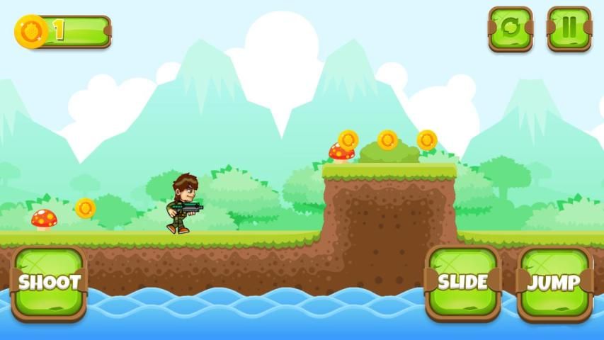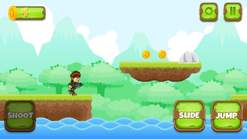 The objective of this shooting game is to let our runner run, jump over obstacles, collect coins and shoot obstacles to destroy them. But, keep in mind that there are many obstacles that are trying to stop you from going far and you should not let them that or you will lose. You should also not fall out of the platform or your adventure will end and you will have to start from the beginning. Sounds easy, but can you really do it and go far to score the highest possible score in this free mobile platformer running game?